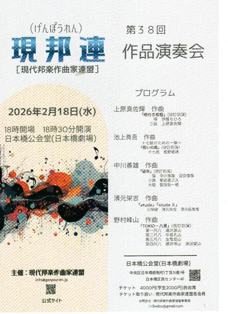 第38回現代邦楽作曲家連盟作品演奏会2026.2.18(水)