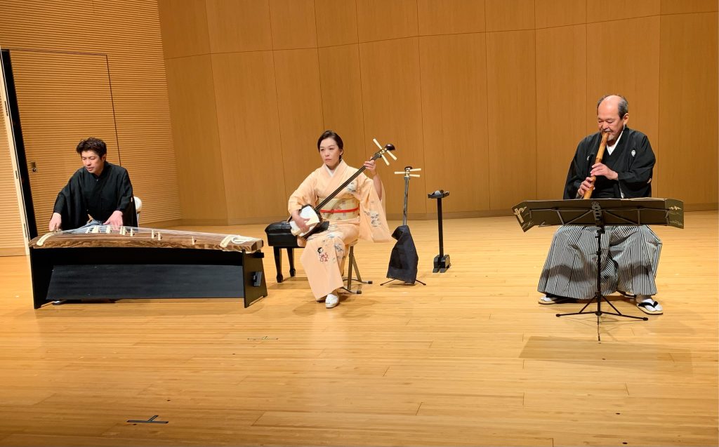 藤沢駅から徒歩10分ほどの「Fプレイス」というところでのコンサートが終わりました。僕達の曲だけが20分かかる山田流の歌物、お客様、飽きませんでしたでしょうか。曲名は須磨の嵐。源平合戦の中の「敦盛最後」という場面を描いた曲で、源氏の武将熊谷直実が、平敦盛を捕らえて兜を脱がせてみるとまだ年端のいかない少年でした。直実は自分の子供のことを思い、切るのをためらいますが、戦いの中のこと、泣く泣く敦盛の首を取る、というあらすじです。僕はもう何度もこの曲は演奏しているのですが、初めて、演奏中に泣きそうになりました。我こそ敦盛ぞ、早や早や首をうたれよ、と名乗るシーンがあるのですが、ここをゆっくり歌うちひろさんに理由を尋ねたところ、自分はもう一人前の武将だからいつでも覚悟は出来ている、という思いと、だがしかし殺されたくない、という思いがあるからだ、とのことでした。本番、ここにさしかかった時に、この言葉が甦ってきてしまい…でした。